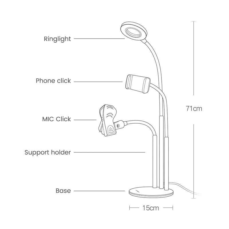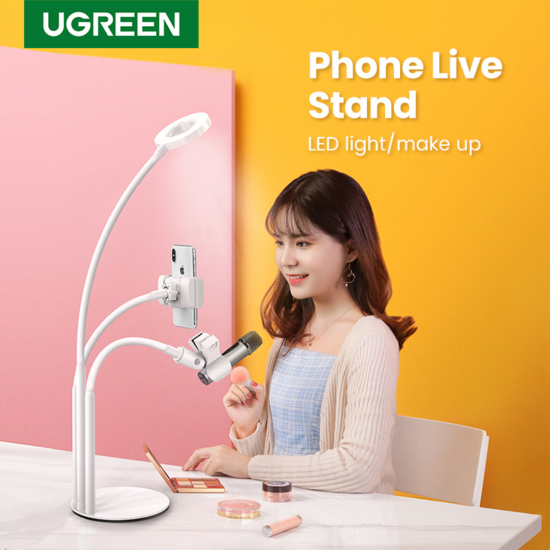 UGREEN Ring Light Mobile Phone Holder for 4.6-6.5 inch phone Led light for TikTok Stand Live Stand Holder with LED Light Adjustable Multi-Functional Holder