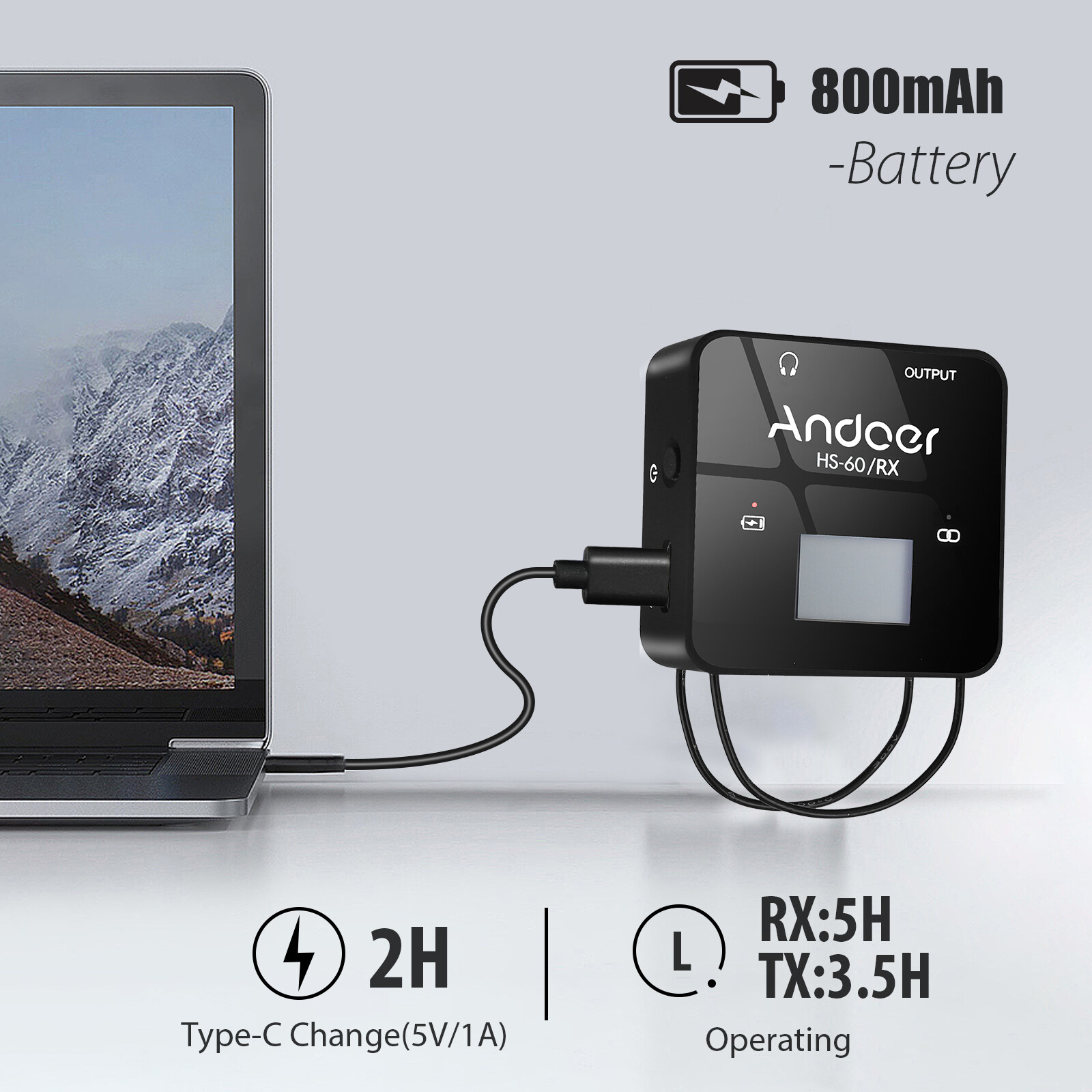 Long Working Time & Transmission Distance:Built-in 800mAh rechargeable lithium battery, the working time of transmitter is about 3.5H and receiver is 5H after fully charging. Effective transmission distance is up to 80M/262ft(in open area), ideal for capture audio in large scene.