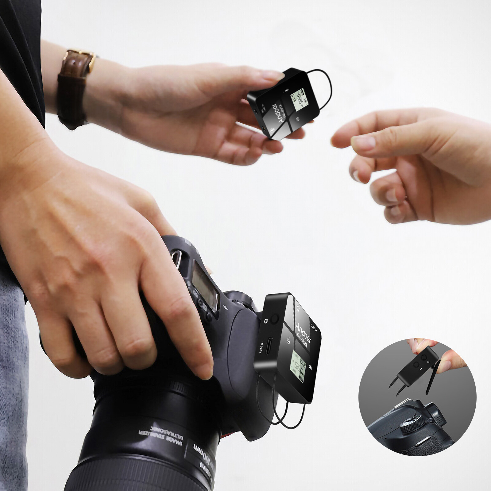 Headphone Real-Time Monitoring:The receiver has a 3.5mm headphone interface, you can connect headphones to monitor the recording effect in real time; with special backside clip, the receiver can be fixed on camera or collar easily.