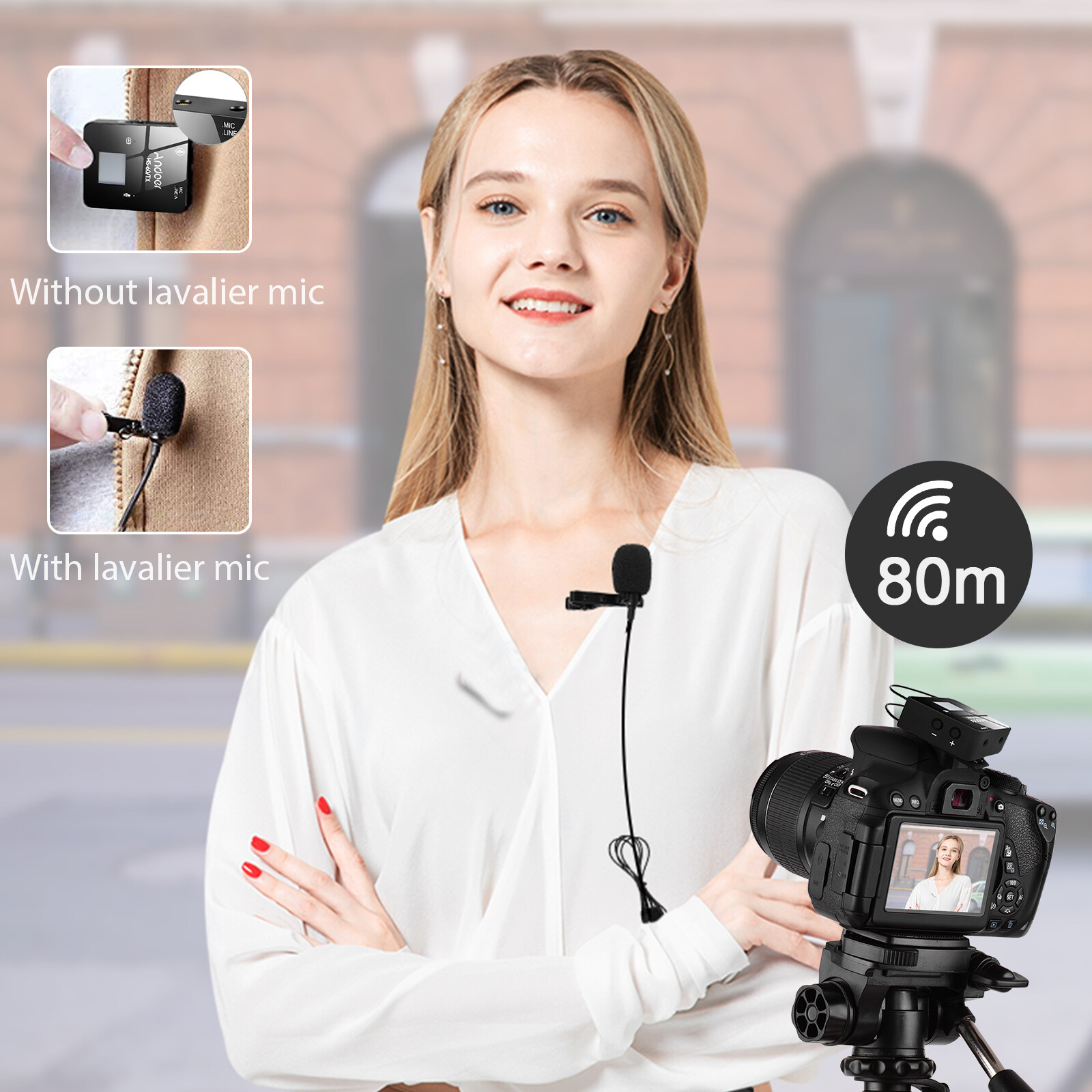 Built-in Mic & Lapel Mic Flexible Usage:The transmitter has built-in microphone and supports omnidirectional pickup with clearer sound, also comes with an external lapel microphone, which allows users to record more flexibly.