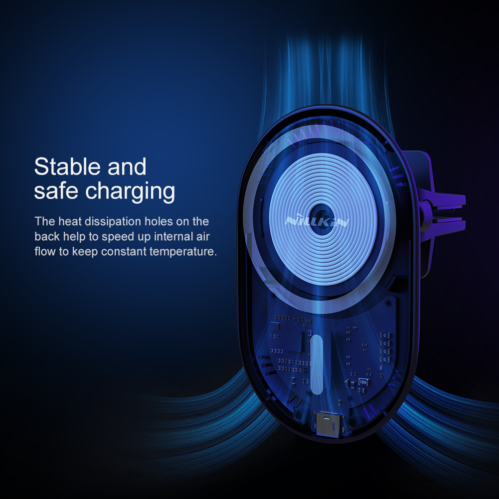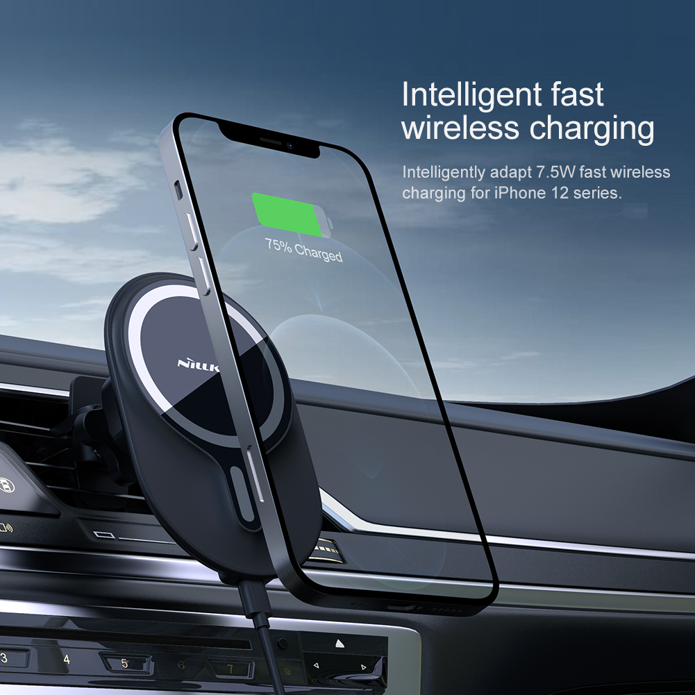 Fast Wireless Charging, Safe DrivingFor iPhone 12 & 13 Series*Note: It's suggested to use with iPhone 12 or 13 series only or with magnetic case.Do note that it can work with Android phone that support wireless charging. Just need to get a magnetic ring sticker to allow it to stick to the holder.Charge on contact - 2 in 1 function, magnetic charging and car holder. Navigation and fast wireless charging work simultaneously, one hand operation, safe driving.Strong Magnet - Ring magnets are reasonably distributed to form a closed magnetic field, gives a 900g of suction. It's very stable even in bumpy road conditions. 900g of suction is equivalent to the weight of 4 iPhone 12 Pro Max.*The closed magnetic field doesn't affect mobile signal.Intelligent Fast Wireless Charging - Intelligently adapt 7.5W fast wireless charging for iPhone 12 & 13 Series.360 degree rotation - with a 360 swivel ball, you can easily adjust different viewing angles.Stable and safe charging - The heat dissipation holes are on the back to help speed up internal air flow to keep constant temperature.Upgraded knob-type fixing clip - According to different thickness of air outlets in cars, you can adjust the clip position.Compact design - Use more integrated components to make product slim. Add soft silicone on the contact surface of the clip to protect the fan from damage.Multiple Protection - Overvoltage protection , overcurrent protection, ESD protection, short circuit protection, FODWidely compatibility - The clip is suitable for the majority of air outlets of cars, easy to install.
