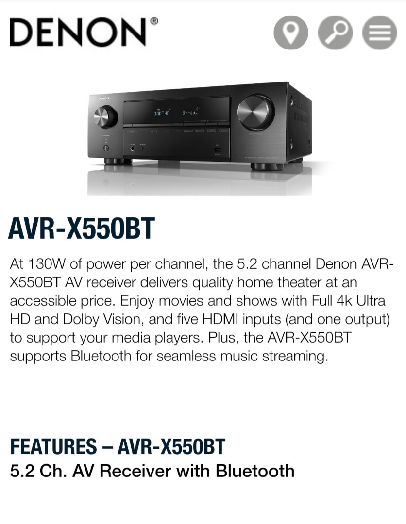 DENON AVR-X550BT with Wharfedale WH-S8E Active Subwoofer, AV RECEVIER, RECEIVER, BLUETOOTH, RADIO, FM/AM, 5.2, DOLBY