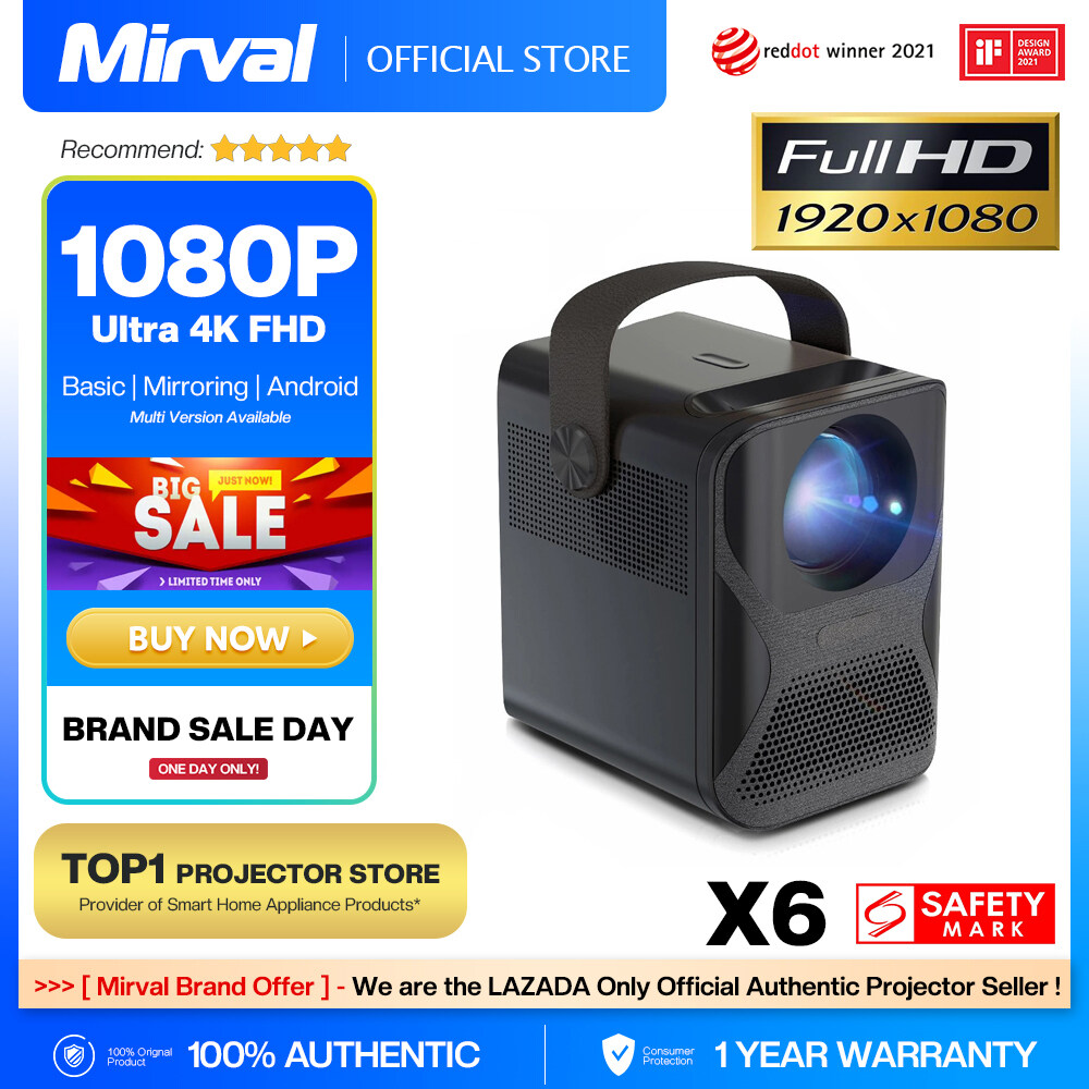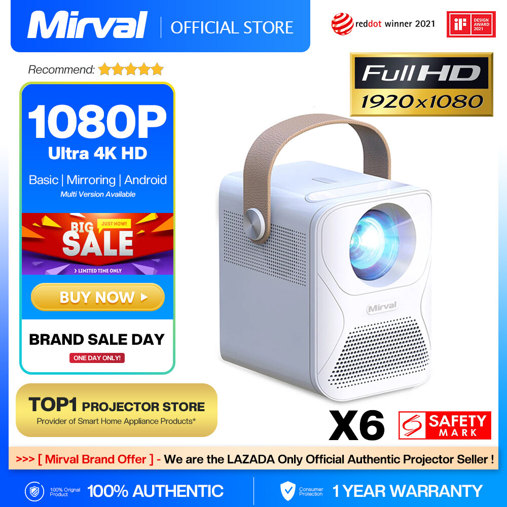 2022【Ultra FHD 1080P】Mirval X6 1080P Mini Portable 4K LCD Projector WiFi Wireless Mirror Screen Miracast Airplay for Phone LED Proyector Home Office Classroom Projectors