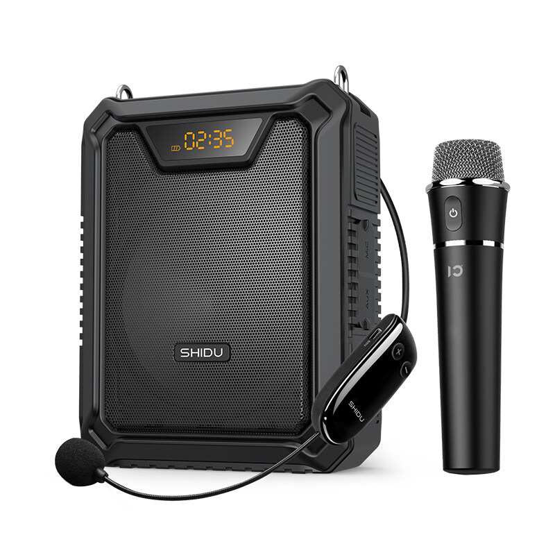 SHIDU M2000 UHF Wireless Voice Amplifier Powerful Portable 30W Bluetooth Speaker Waterproof with 2*Wireless Mic 5000mAh Large Capacity Rechargeable Battery PA Systems Speaker for Teachers Classroom Meetings and Outdoors.