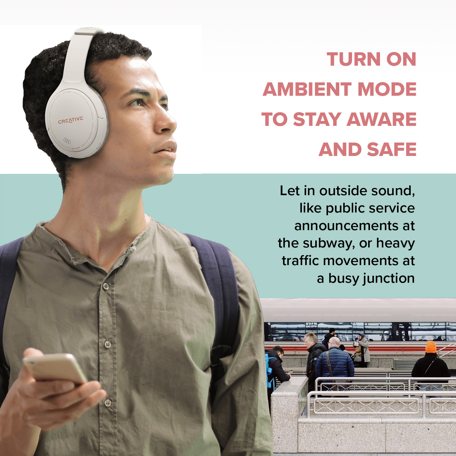 Creative Zen Hybrid Wireless Over-Ear Headphones with Hybrid Active Noise Cancellation, Ambient Mode, Up to 27 Hours (ANC On), Bluetooth 5.0, AAC, Built-in Mic, Voice Assistants, Foldable Design
