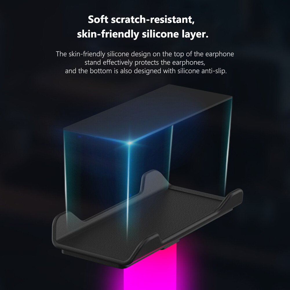 Soft scratch-resistant, skin-friendly silicone layer. The skin-friendly silicone design on the top of the earphone stand effectively protects the earphones, and the bottom is also designed with silicone anti-slip.