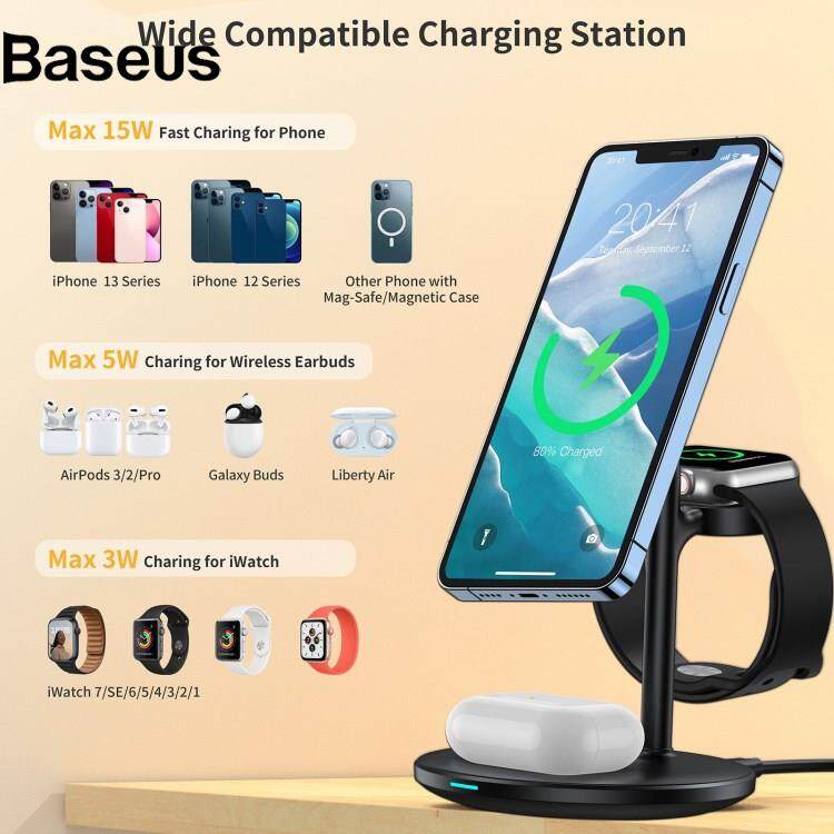 Baseus JJT-980 Desktop Charging Stand 3 in 1 Detachable Magnetic Wireless Charger for iPhone / Apple Watch / Earphones