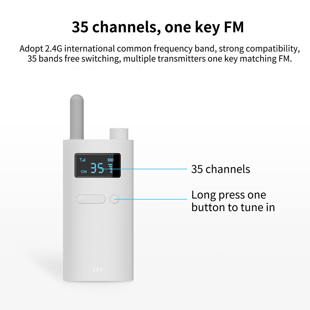 2. Features: The earphone and microphone use the 2.4G frequency band, which has strong anti-interference ability, high confidentiality, and multi-channel. Basic information such as channel numbers and signals are displayed on the OLED screen. With buttons and knobs, the product is easy to operate and beautiful.