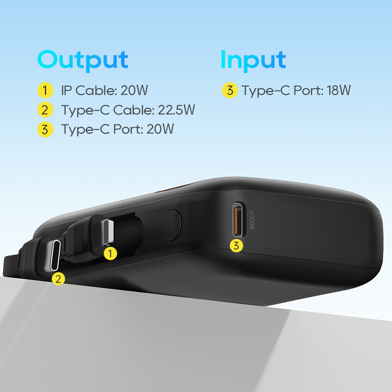• Built in Two Cables:Equipped with Type-C and lighting data cables, whether you are using Android or Apple devices, you can directly connect to a power bank for charging, fast and convenient.