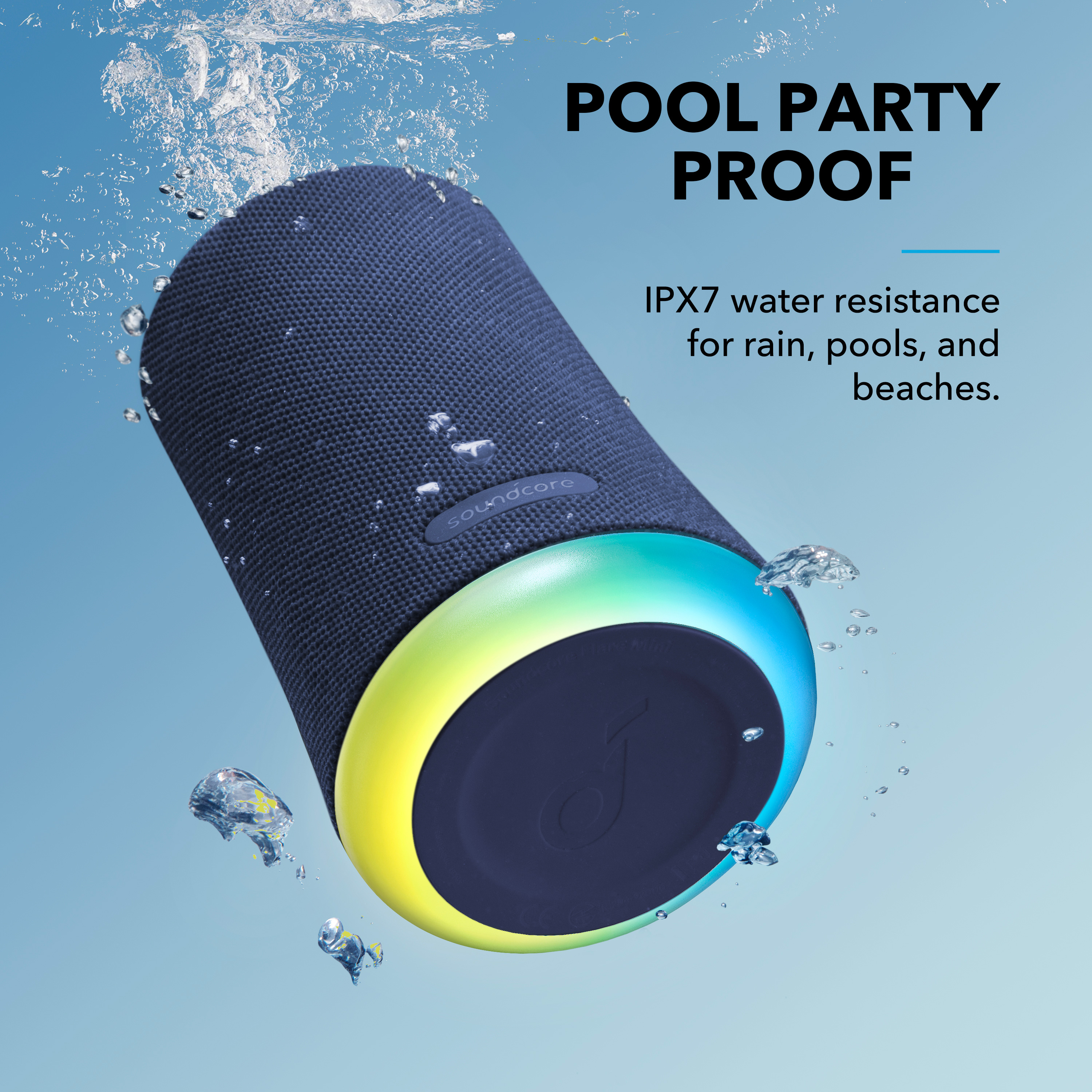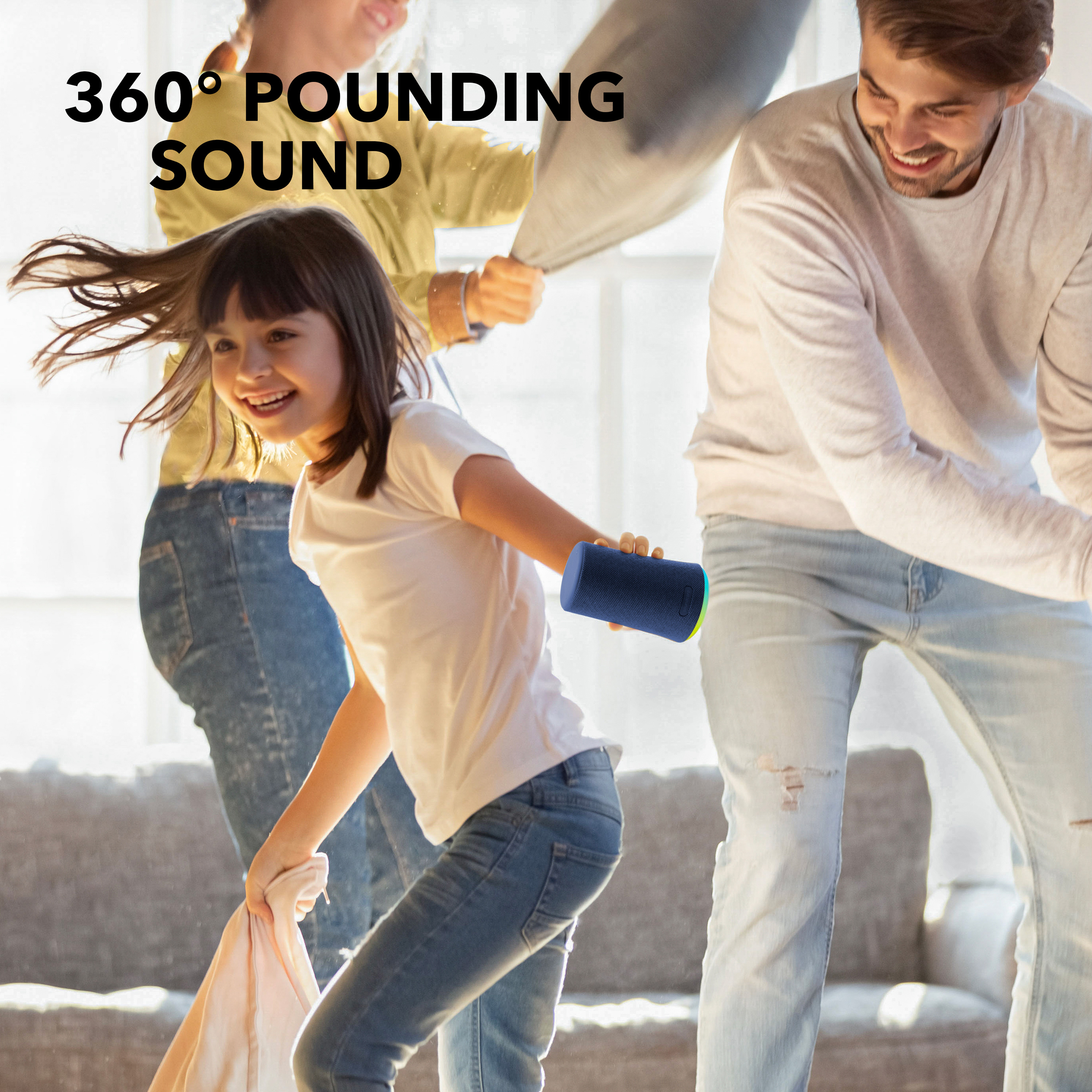 A complete party squeezed into a Bluetooth speaker. Bass-driven 360° sound is synchronized with a pulsing light show that takes your music into the stratosphere. 5 illumination modes allow you to completely customize the atmosphere; lift the crowd to new heights or bring them down from the ceiling. At the beach, by the pool, or anywhere else; just press play to start the party.