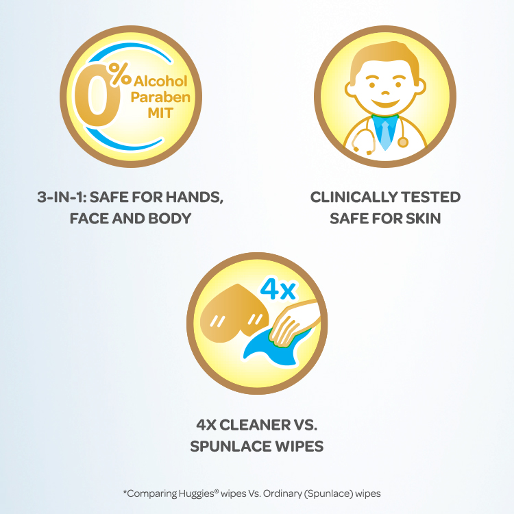 •1 Huggies wipe = 4 ordinary wipes^